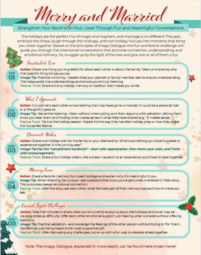 Download our FREE guide to discover five festive and heartfelt conversations that will deepen your connection, create joyful memories, and turn holiday moments into lasting intimacy and joy.